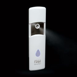 - NU負離子保濕噴霧儀通過高頻振盪奈米微孔霧化片將液態水打散霧化噴出,搭配NU負離子能量片,可釋放高濃度負離子含量,主要用於臉部補水保濕、美容之用。